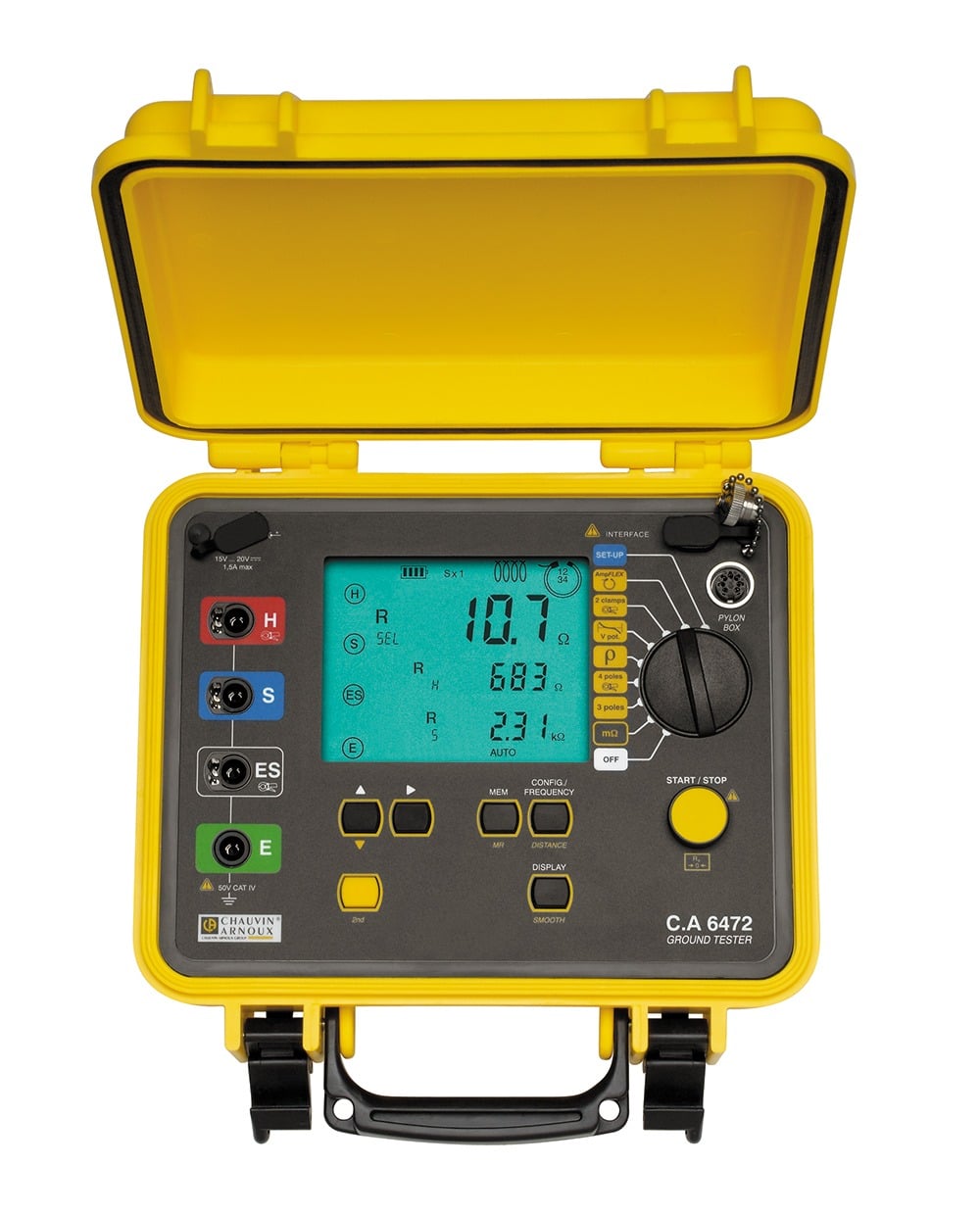 CA6472 varnar automatiskt vid dåliga anslutningar och visar resistansen för varje enskilt hjälpspätt direkt på displayen. Den kan användas både med traditionella jordspett och med de två medföljande slingresistanstängerna C182, som även möjliggör mätning av läckström och selektiv jordmätning på parallella jordtag under drift.