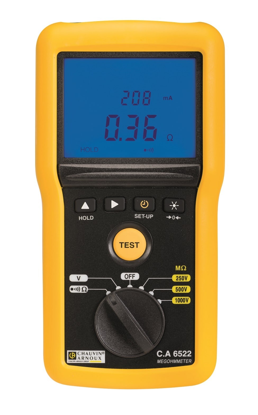 CA6522 är en användarvänlig och robust isolationsprovare framtagen för arbete i både fasta installationer och på högvoltsmoduler i fordon. Med en tydlig analog/digital bakgrundsbelyst display blir det enkelt att både avläsa exakta värden digitalt och snabbt uppskatta variationer via den analoga skalan.