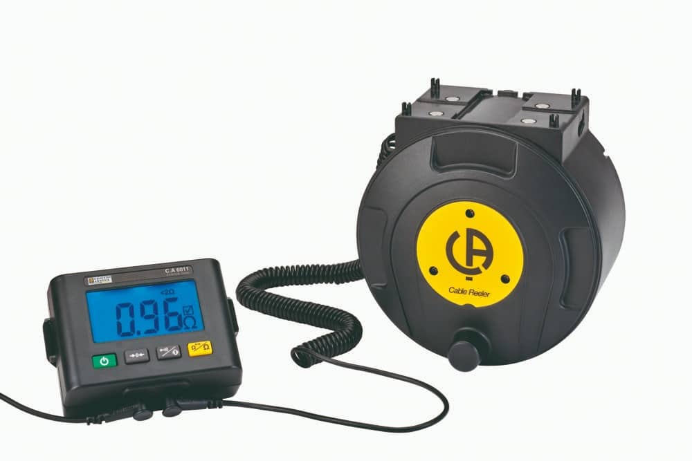 CA6011 kompenserar även kablarnas egenresistans, en viktig funktion vid mätning med längre kablar. Som praktiskt tillbehör finns en 30 m specialkabel på kabelrulle, lätt att rulla ut och samla ihop efter test.