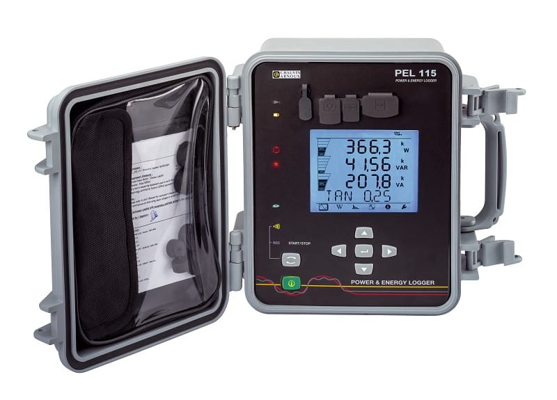 PEL115 är en robust, vattentät energilogger (IP67) som fungerar i utomhustemperaturer ned till –20 °C. Den är idealisk för energi- och effektanalys på 1- och 3-fasinstallationer, både AC och DC, och kan användas med spänningskablar med skruvanslutning samt MiniFlex MA194/MA196 och AmpFlex A196 rogowskispolar.